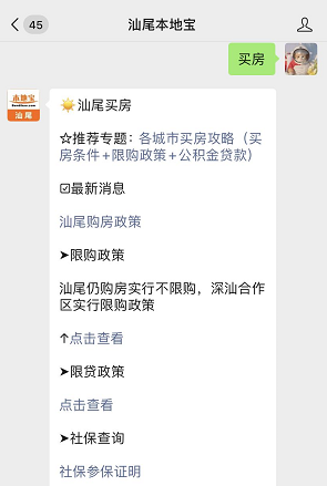温馨提示:微信搜索公众号汕尾本地宝,关注后在对话框回复【买房】可获取汕尾购房政策最新消息 汕尾限购政策 限贷政策 社保参保证明查询等。